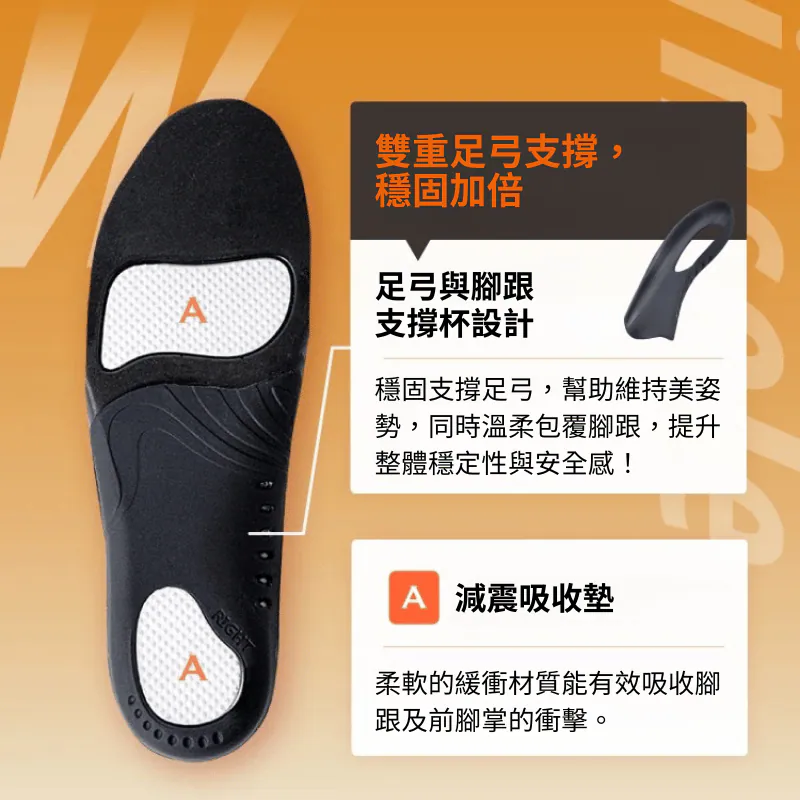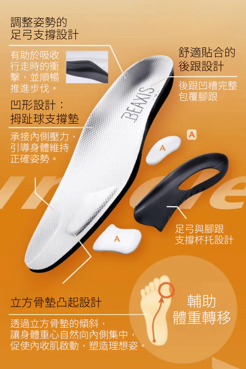 透過能啟動核心肌群的專利鞋墊,幫助你矯正走路姿勢,