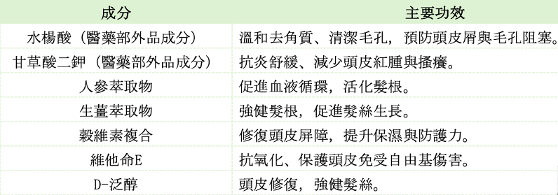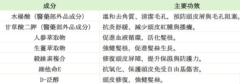 l 強健髮根 l 護理頭皮 l 促進生髮l 防脫固髮l 抗炎止癢